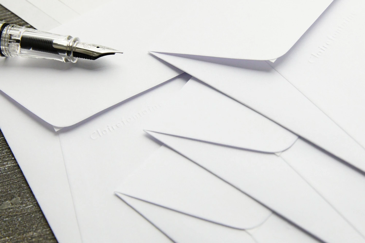 These self-sealing envelopes match the A5 Clairefontaine Triomphe stationery tablets (fold each sheet in half to fit). This set of fountain pen-friendly bright white 25 envelopes features a white tissue lining with an opaque grey lining for extra security.