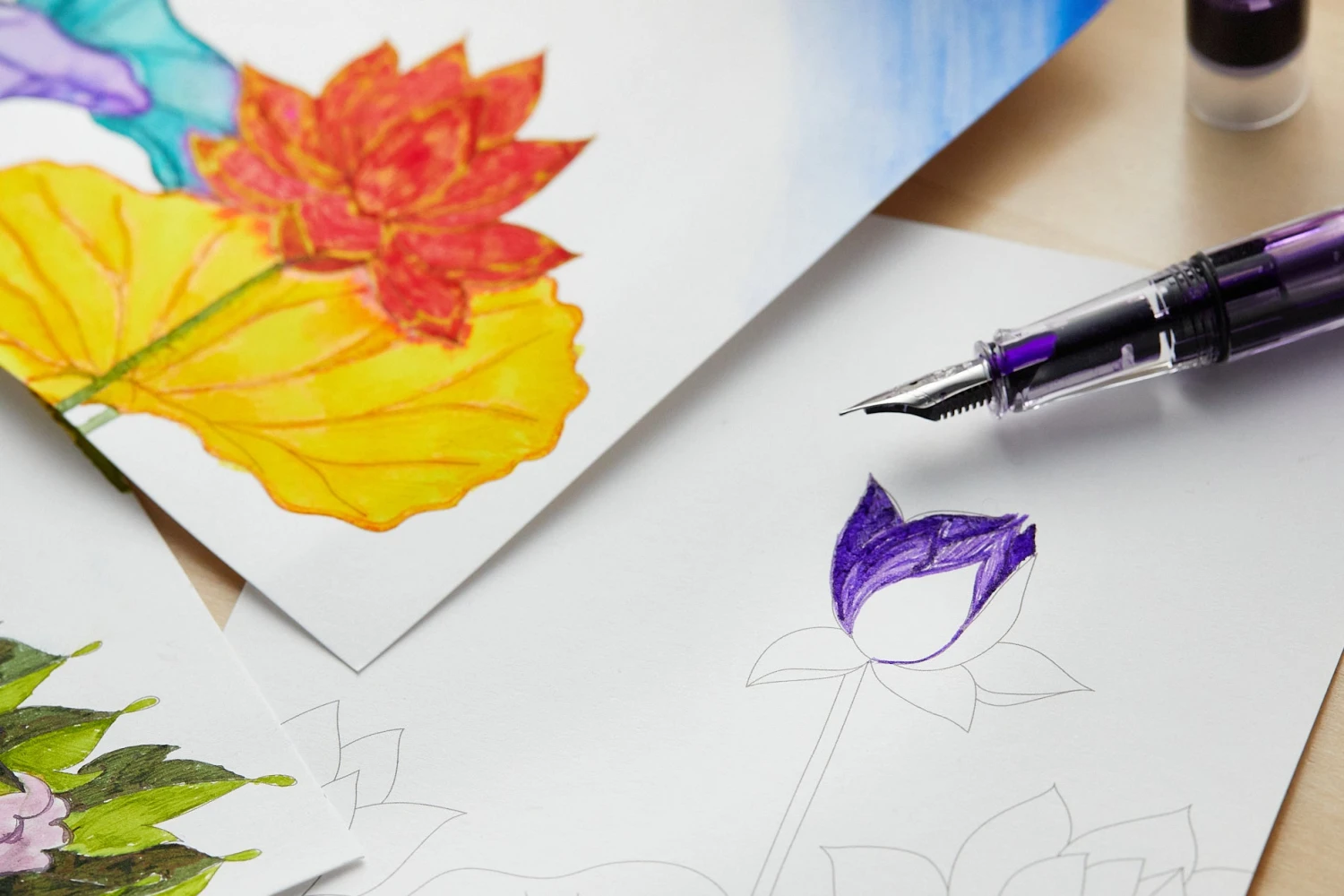These coloring sheets are perfect for those who enjoy the art of coloring and fountain pens.