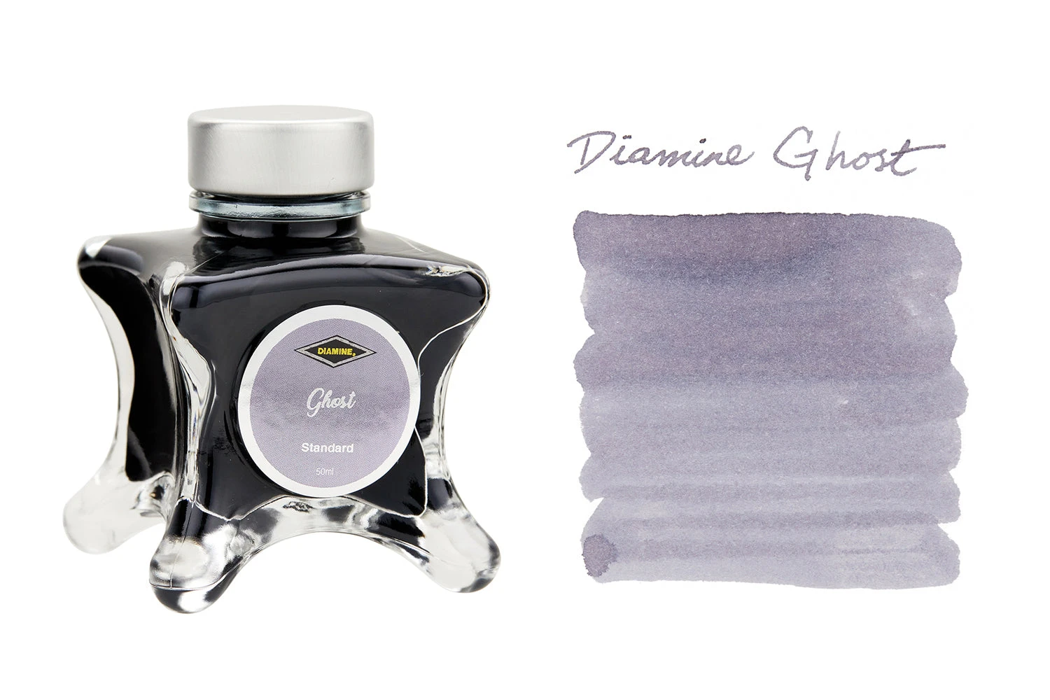 Initially launched as part of the 2022 Diamine InkVent calendar and now a part of the regular Diamine Green Edition collection, this Ghost fountain pen ink is a grey color. Comes in a 50ml glass bottle.