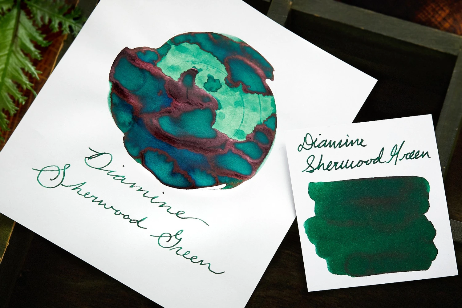 Set of 18 Diamine Sherwood Green short standard international ink cartridges.