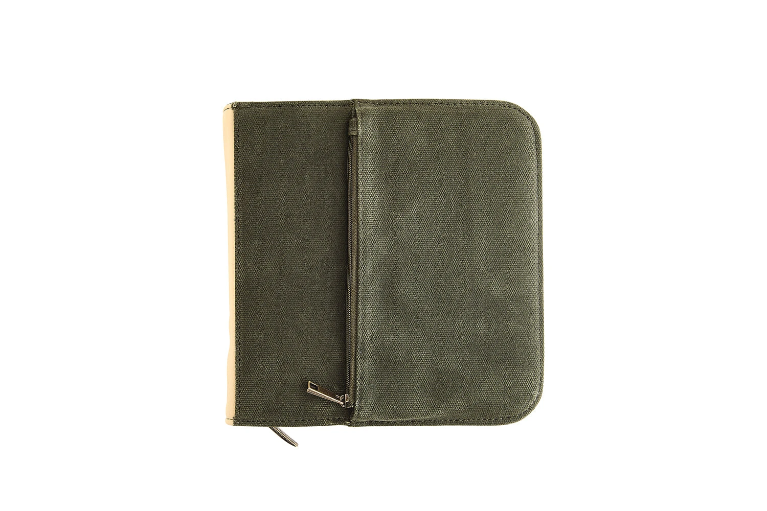 This green canvas case holds up to 20 pens, each held snug in its own slot.