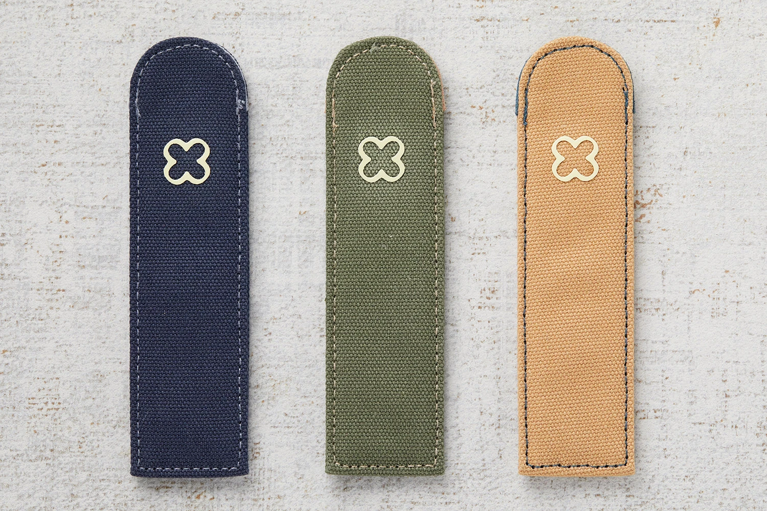 This tan canvas pen case holds 1 pen snug in its own fabric-covered slot. The sleeve is perfect for those on-the-go who need a quick and easy way to keep your most precious cargo safe, secure, and stylish.