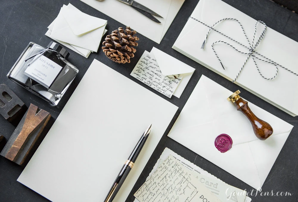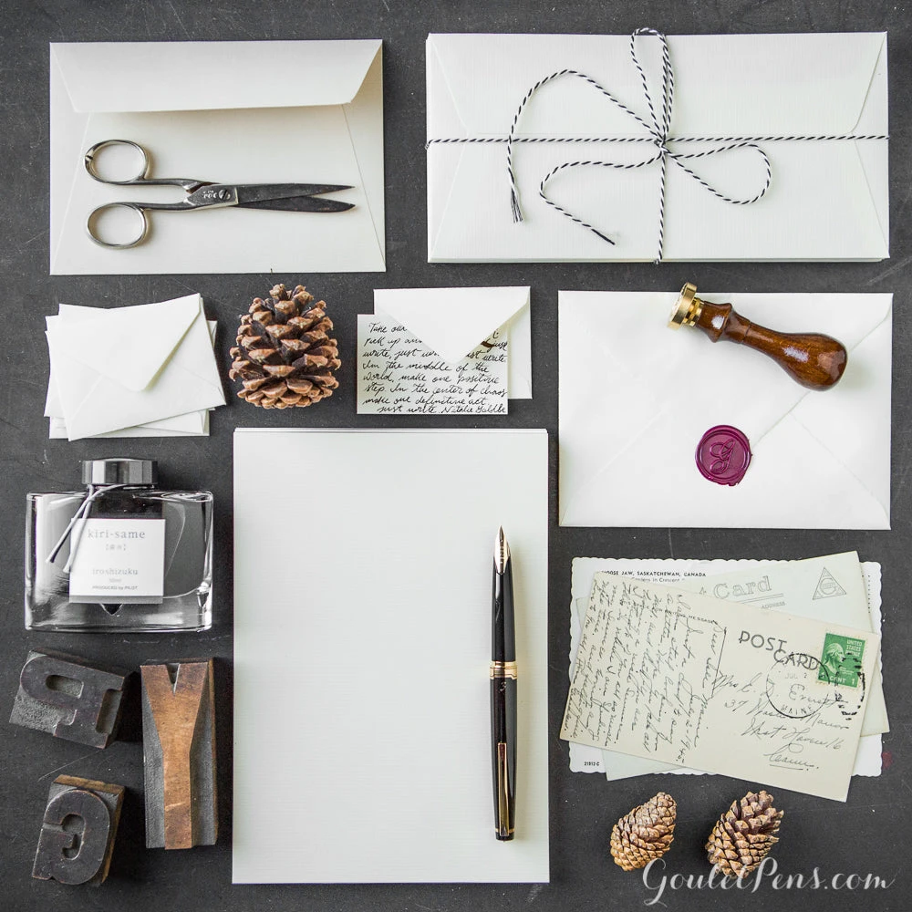 This A5-sized stationery tablet of G. Lalo Vergé de France contains 50 removable sheets of blank 100g laid ivory paper.