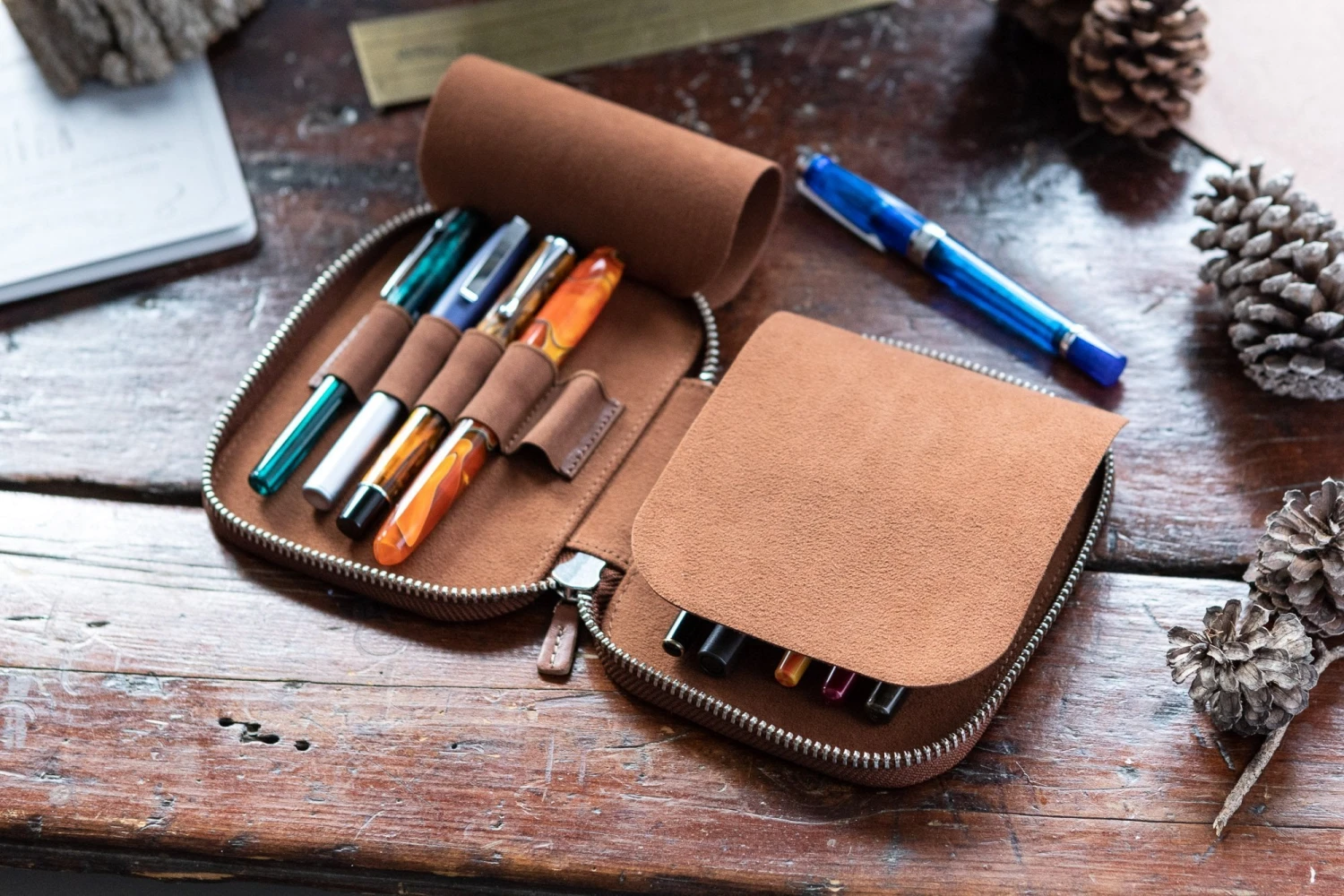 This Leather Zippered Pen Case has a velvet lined interior and holds up to 10 pens. When you want to carry your favorite pens, you want them protected in your bag, purse or pocket to avoid ink leaking everywhere or getting them scratched. This leather pen holder is great to protect your fountain pens and keep them safe.