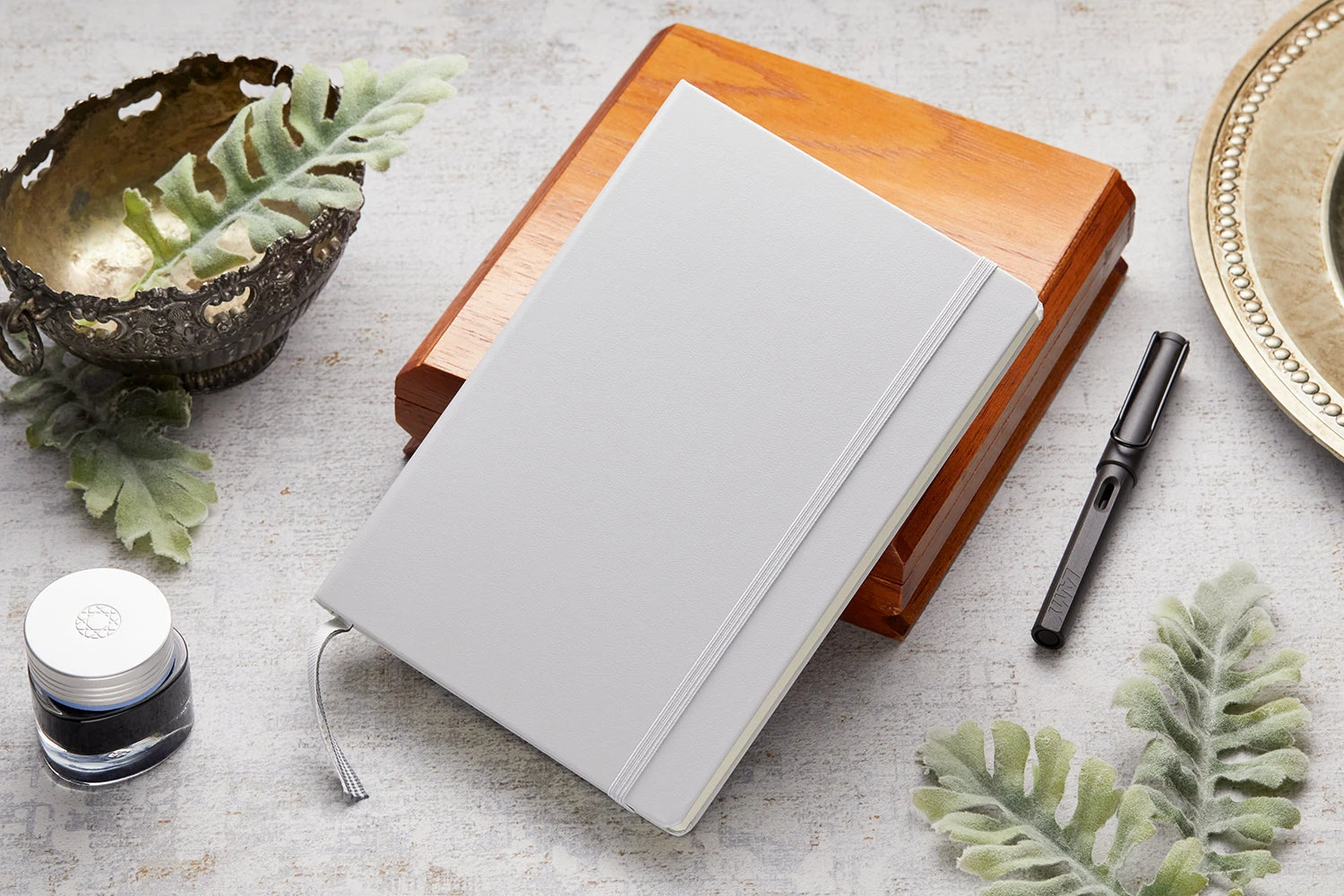 This medium A5-sized light grey Leuchtturm1917 hardcover notebook is equally suited for the desk and for use on the move. It contains 249 numbered pages (125 sheets) of 5mm dot grid 80g ivory paper. Features include an expandable pocket, a blank table of contents, two ribbon page markers, elastic band fastener, stickers for labeling/archiving, and it opens flat.