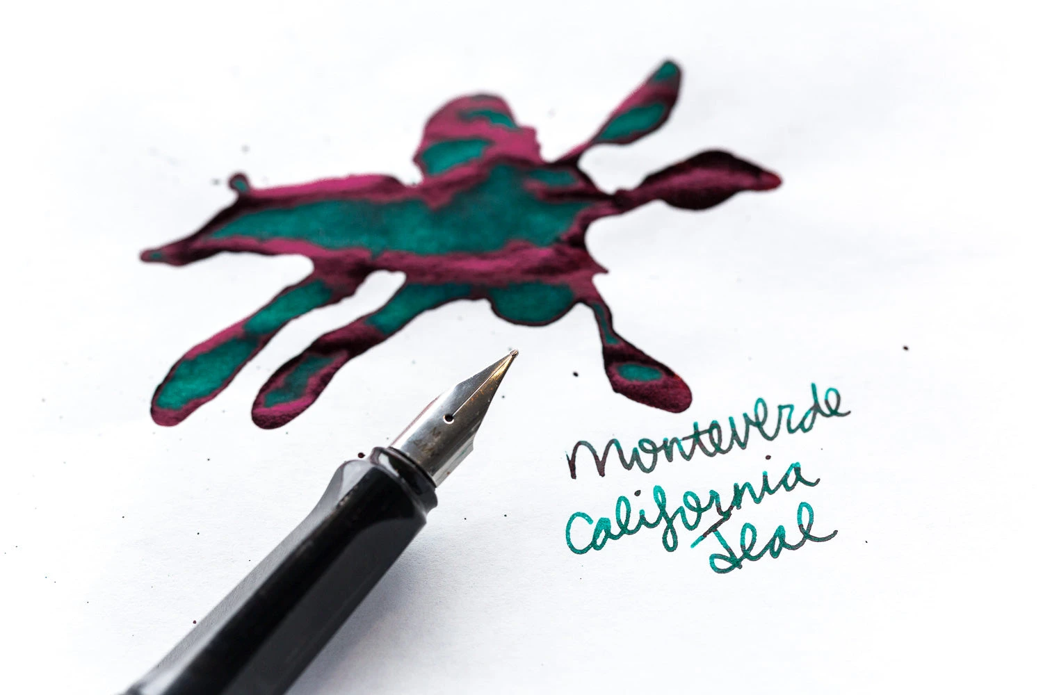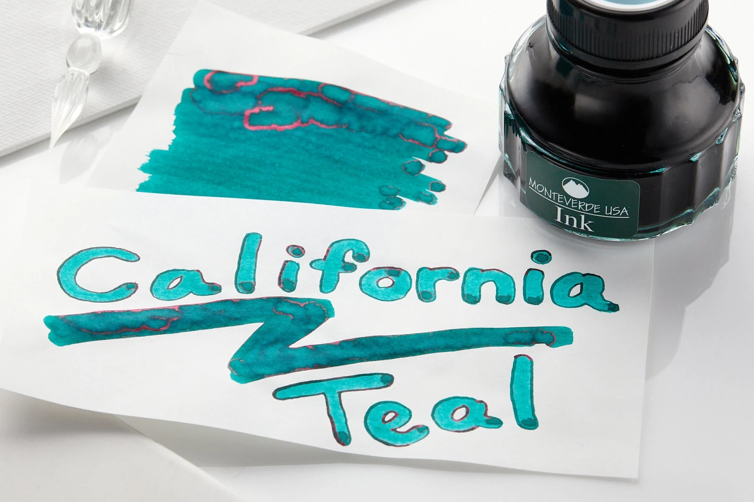 90ml bottle of Monteverde California Teal fountain pen ink. Monteverde ink is lubricated to help prevent it from drying out in your pen.