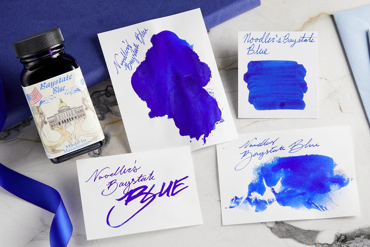 4.5 oz bottle of Noodler’s Baystate Blue fountain pen ink. This bottle has a built-in eyedropper. Comes with a free Noodler’s “Charlie” eyedropper fountain pen. Noodler’s inks are handcrafted, so there may be slight color variations from batch to batch.