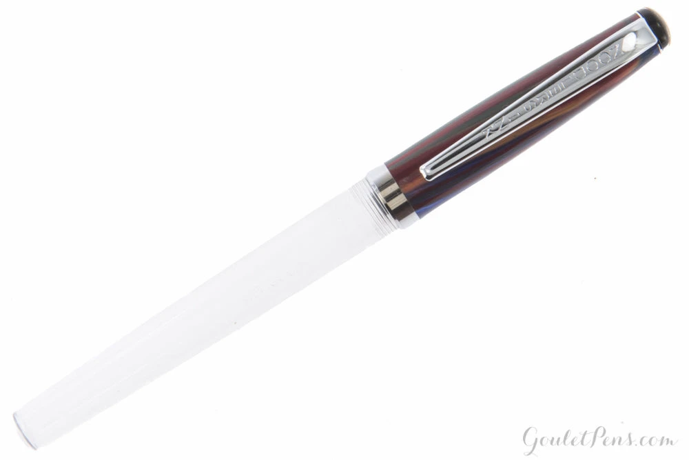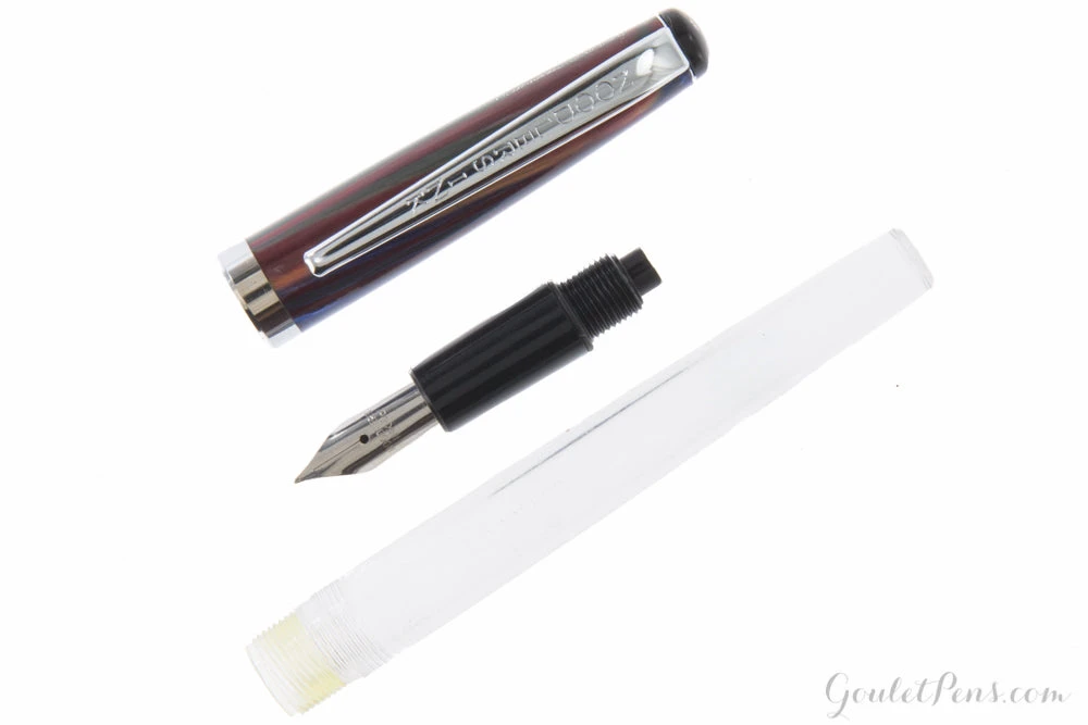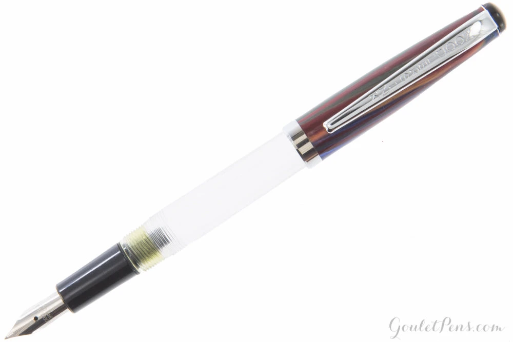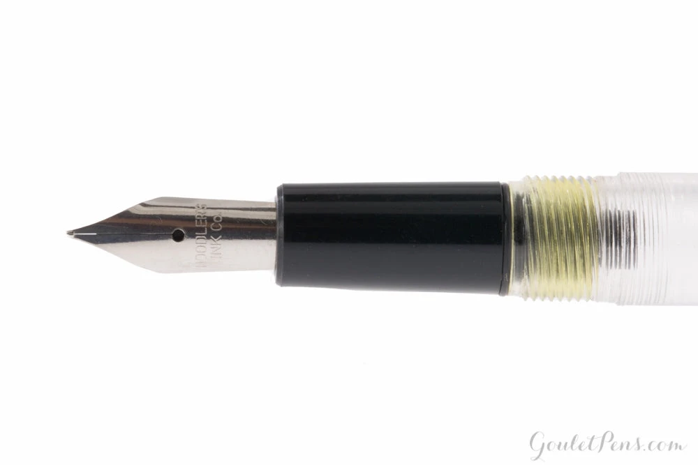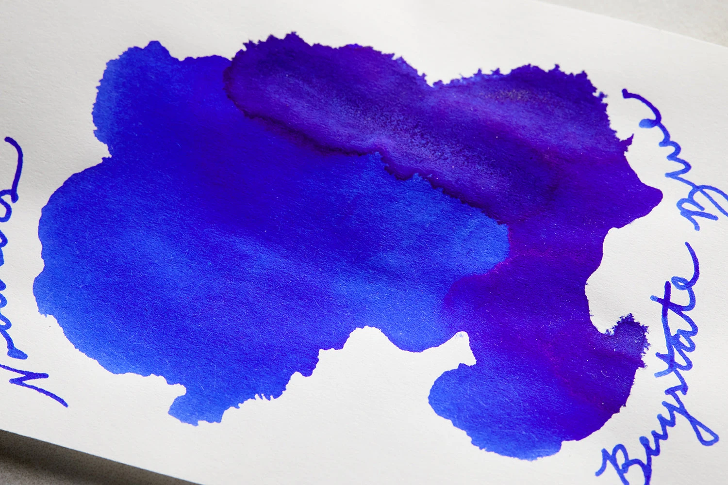The Noodler’s Baystate inks are slightly different formulas than conventional fountain pen inks. They are designed to be more vibrant than other inks and have a slightly basic pH-level, and as a result they are prone to staining and should not be mixed with other non-Baystate inks. If staining should occur, a solution of 10% household bleach and 90% distilled water should help. If you have any particularly rare or valuable pens, you may want to avoid using Baystate inks in them.
