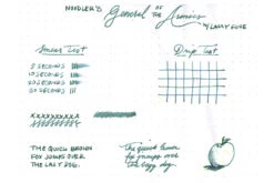 This green and white Noodler’s Nib Creaper flex fountain pen features a small, slender body with a steel flexible #2 nib and a twist piston mechanism. A small ink window shows how much ink is left in your pen. These pens are made from a celluloid derivative. The vegetal resin body of this pen may show particles or striations within the material. This is most noticeable in demonstrators and bright colors.