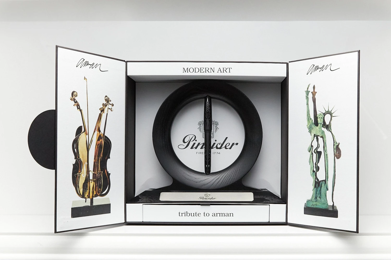 In his most famous works, Arman expressed his disapproval of “cookie-cutter” mass-production through deconstruction and fragmentation of commonplace items. Pineider, in this homage to the artist, breaks the mold of modern pen design by cutting away sections of the body to highlight the function and uniqueness of these writing tools.
