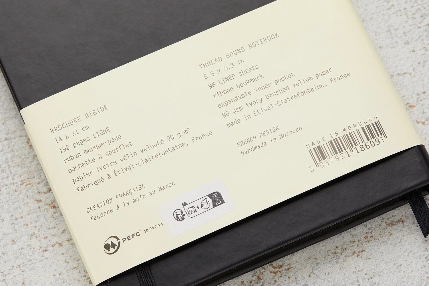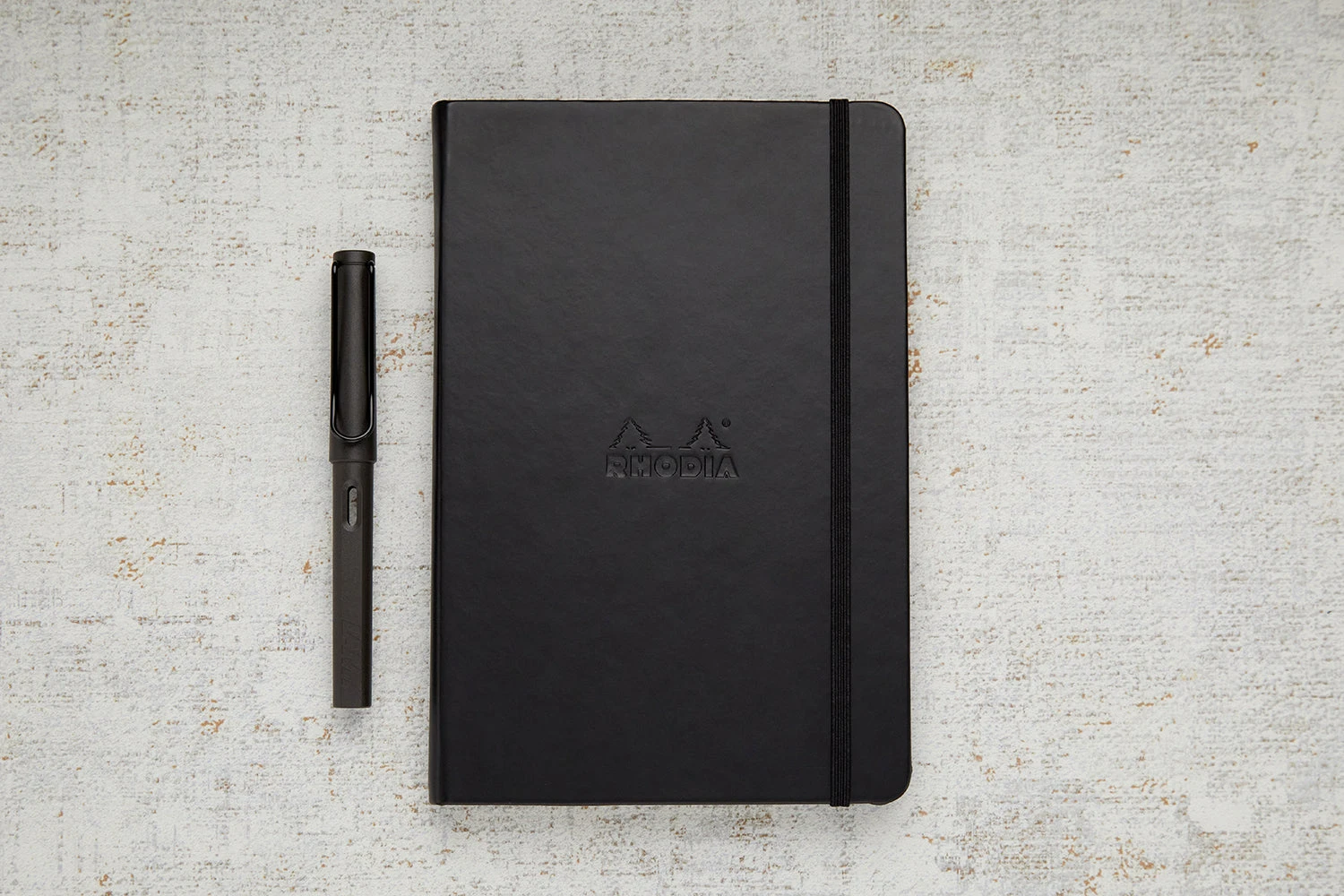 Known as the “Webbie”, the Rhodia Webnotebook is the choice for fountain pen users and everyday note taking. This A5-sized notebook has a black leatherette hard cover. It is filled with 96 sheets (192 pages) of premium 90g ivory Clairefontaine ruled paper. Lines are spaced 7mm apart. Other features include a ribbon marker, an elastic closure, an inner pocket for notes and cards, and elegant round corners.