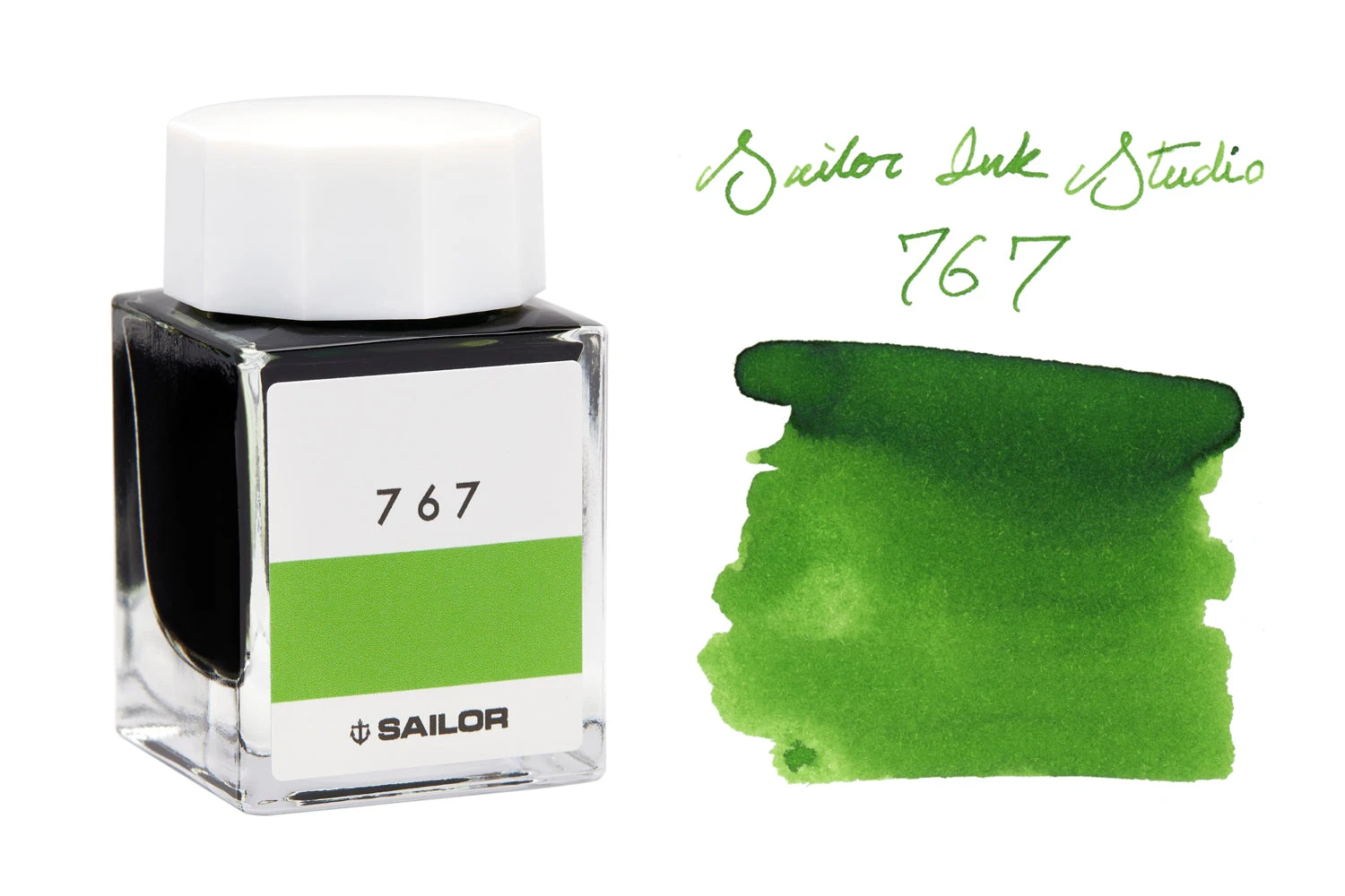 20ml square glass bottle of Sailor Ink Studio 767 green fountain pen ink.