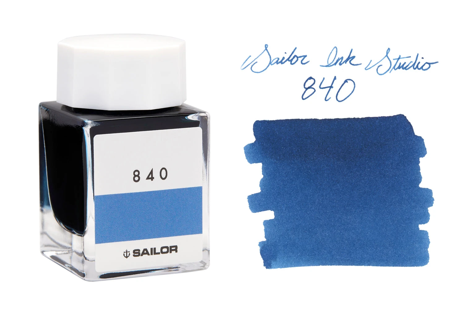 20ml square glass bottle of Sailor Ink Studio 840 blue fountain pen ink.
