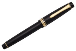 The Sailor Pro Gear Slim fountain pen is equipped with a 14k gold nib in fine, medium fine, or medium. The cap screws to open/close and can push to post onto the back of the barrel when writing. Each pen comes with a proprietary Sailor converter.