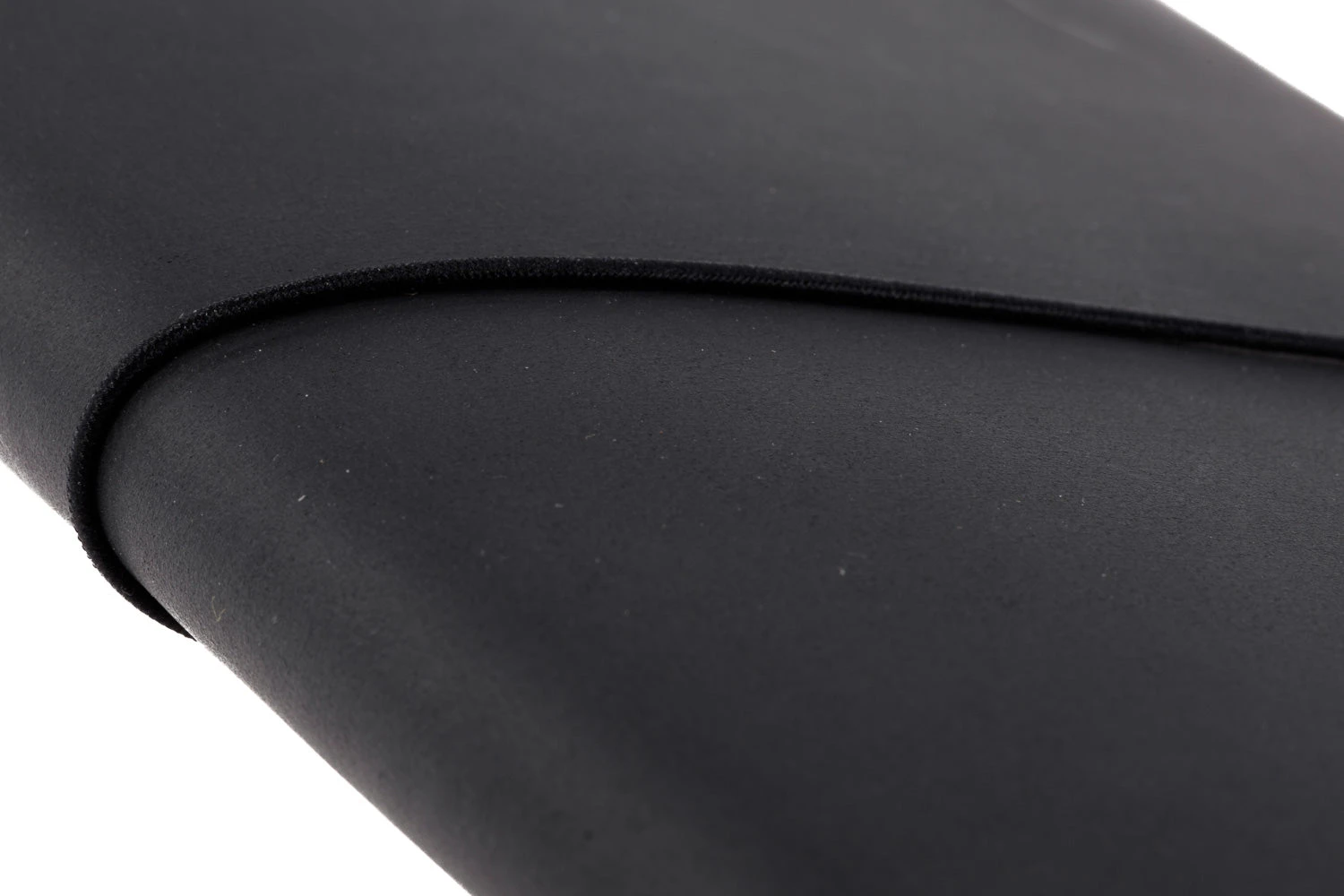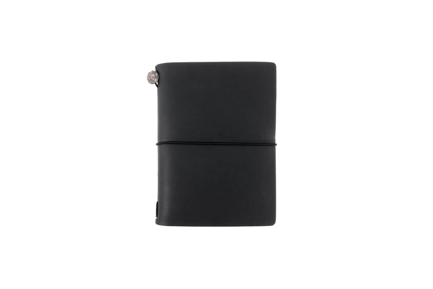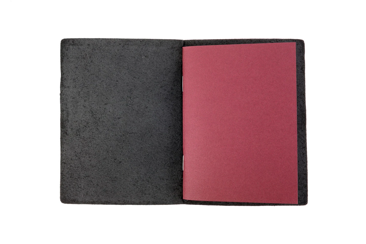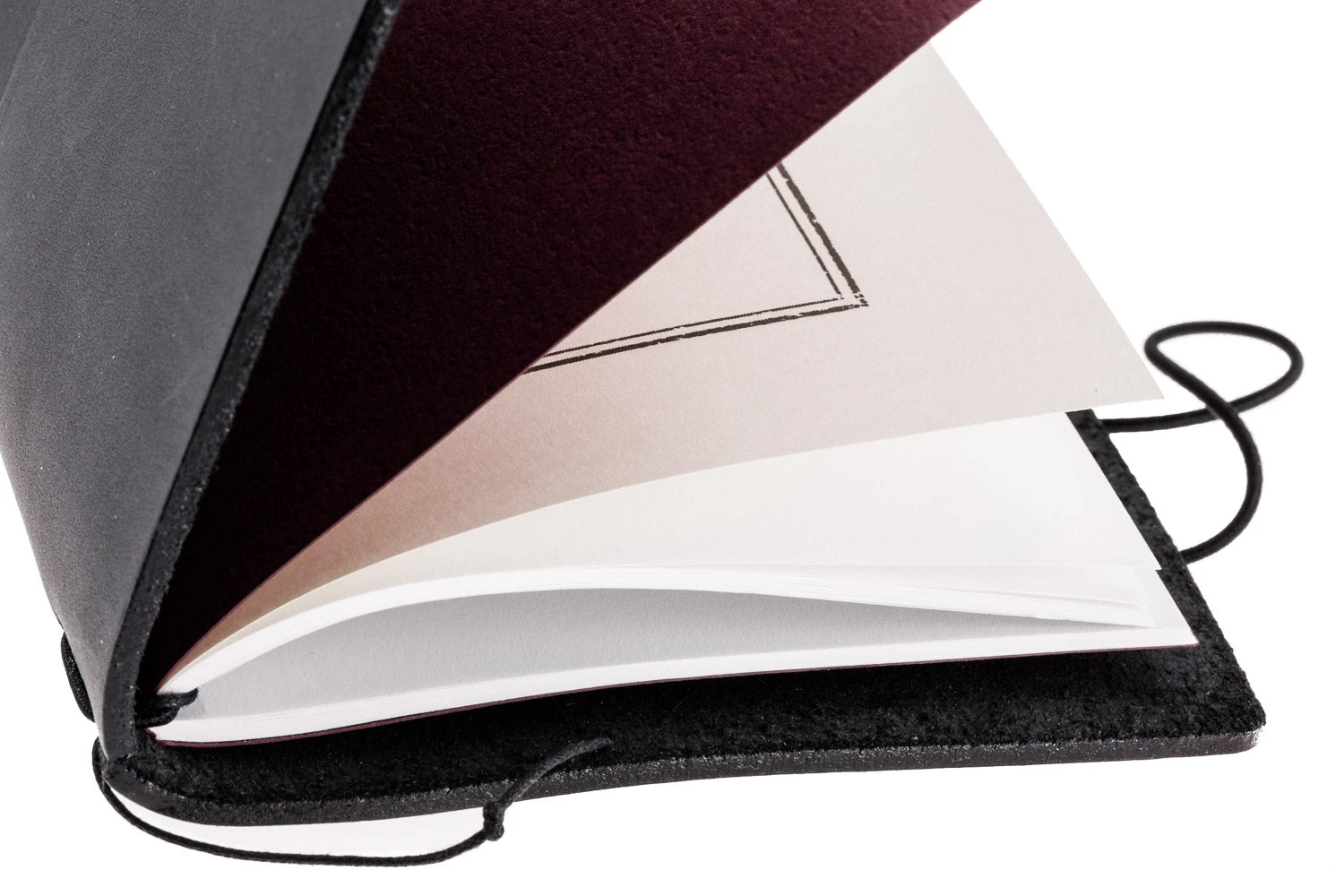In a way, it is a passport into the journey of your life. Traveling abroad, you get a stamp on your passport. Moving forward in the journey of your life, you can write down your experiences in this passport-sized notebook. It comes in a package which contains the black leather cowhide cover, a blank notebook, a cotton case, and a spare closure rubber band (of a different color).