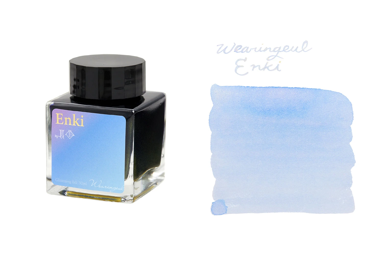 This blue 30ml glass bottle of Wearingeul Enki fountain pen ink has beautiful golden shimmer. It’s inspired by the god of wisdom and water in Sumerian mythology.