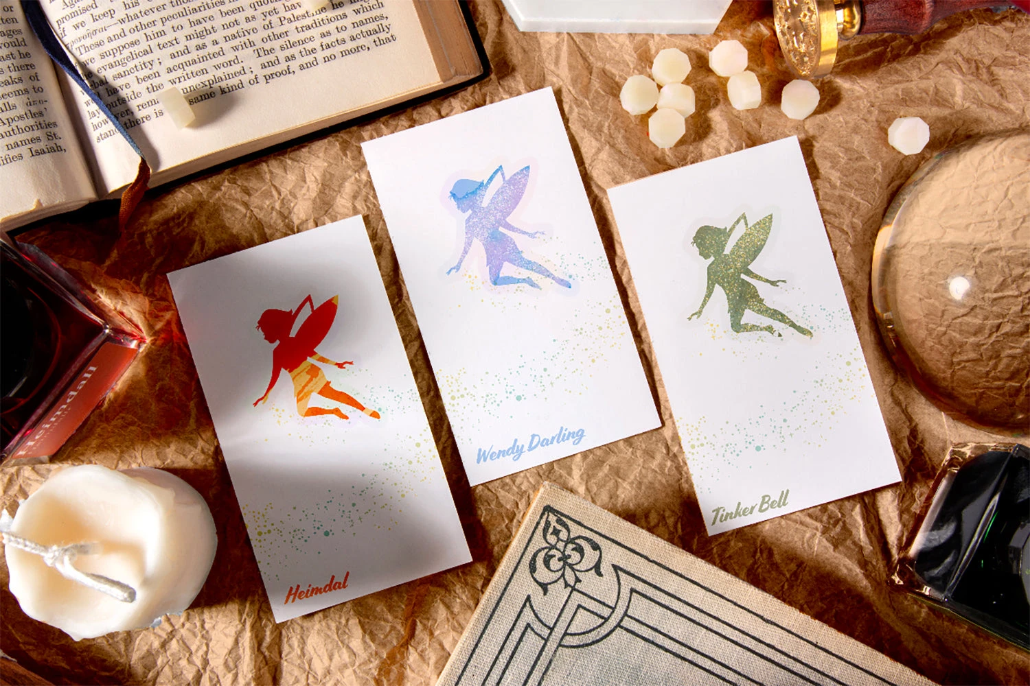 The paper is Wearingeul’s Impressions paper with a weight of 200g/m². Each individual card depicts the Tinker Bell shape. 50 sheets are included, and each card measures 90 X 50mm.