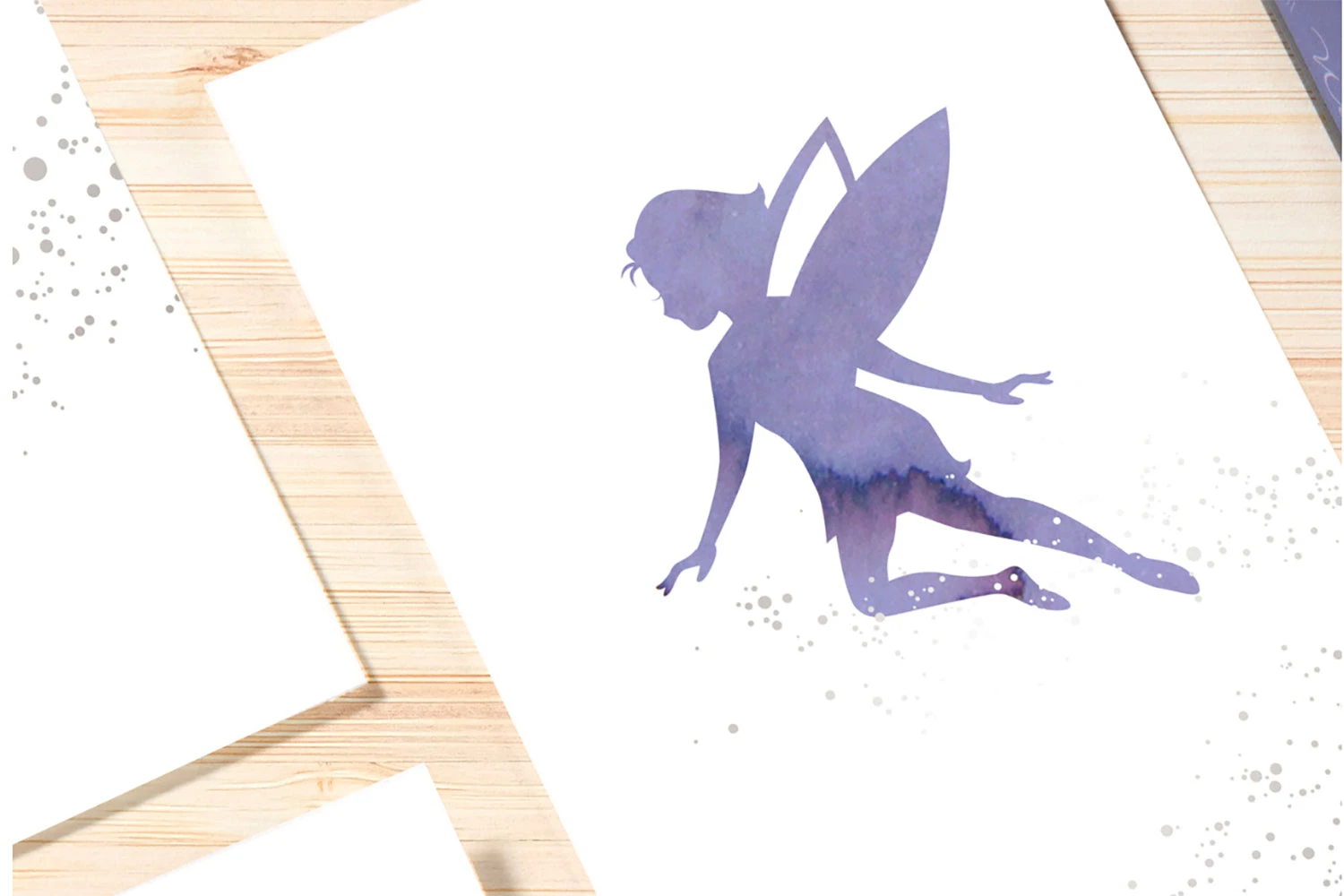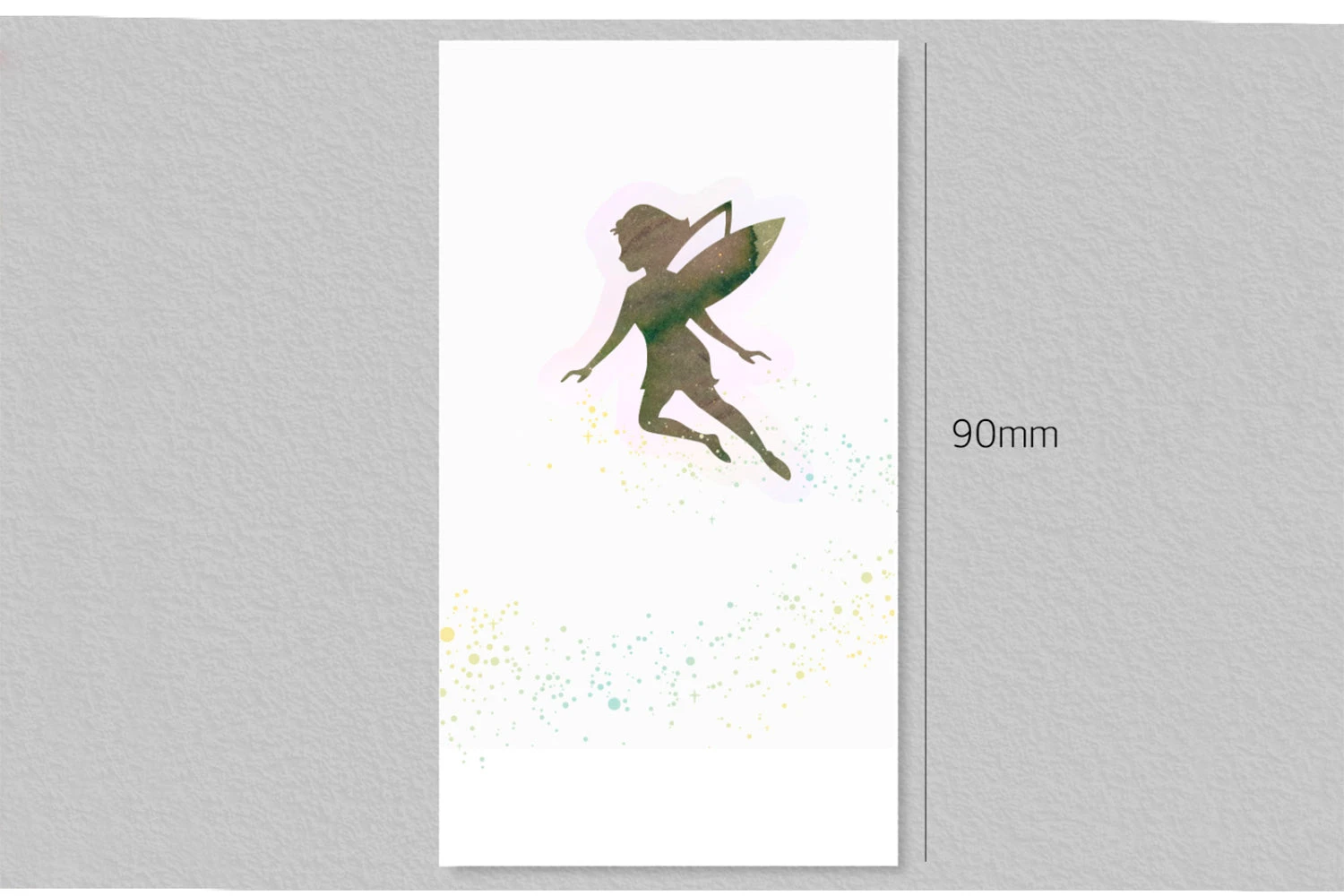 These vertical cards have a special coating around the Tinker Bell shape, allowing for a clean presentation of ink color only within the Tinker Bell shape, and not anywhere else! Due to the characteristics of ink and coating, the corners of the shape may appear slightly uneven. Tinkerbell’s surroundings are adorned with shimmering silver printing, evoking the sensation of fairy dust glistening.